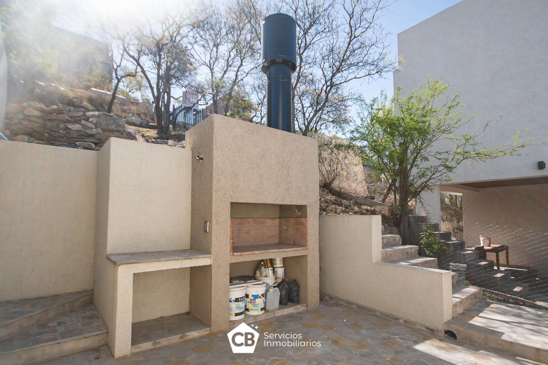 Patio con asador y piso para futura galería.