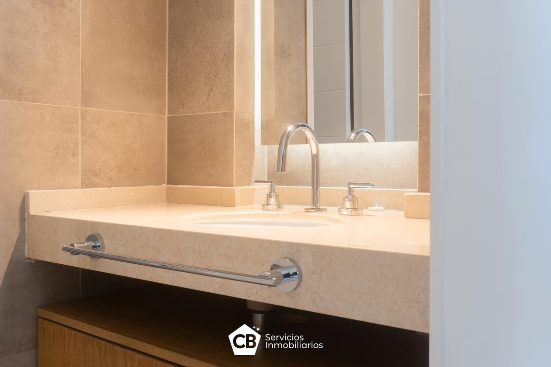 En primer piso Sala de estar con amplio balcón, comedor, cocina equipada con muebles bajo mesadas y alacenas. Cuenta con 3 dormitorios de los cuales 1 es en suite y otro es mas pequeño.